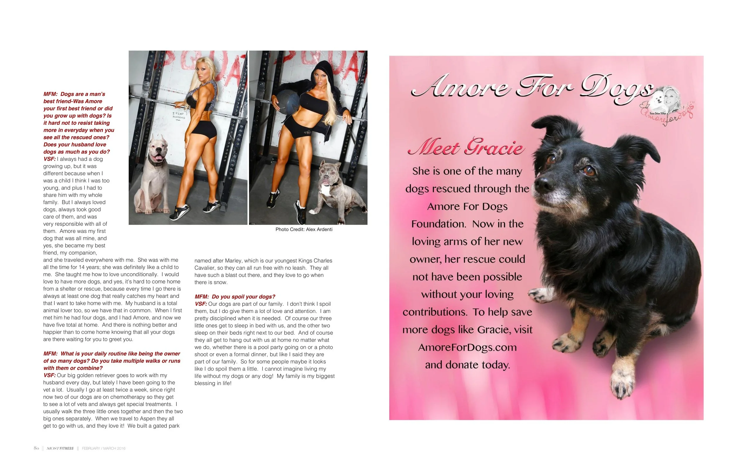 "Your dog will always keep you happy all of the time even when things get tough or sad, because dogs have a way of showing you love and giving you love 100% all of the time." And that same love is given right back to the dogs by fitness celebrity and glamour model, Viviana Soldano FaBrizio. Gracing the cover of our November issue, we interviewed the Italian beauty about her fitness career, her life as a model as the daughter of a famous designer, and about her entrepreneurial endeavors — the most important of which, being her non-profit foundation, Amore for Dogs.