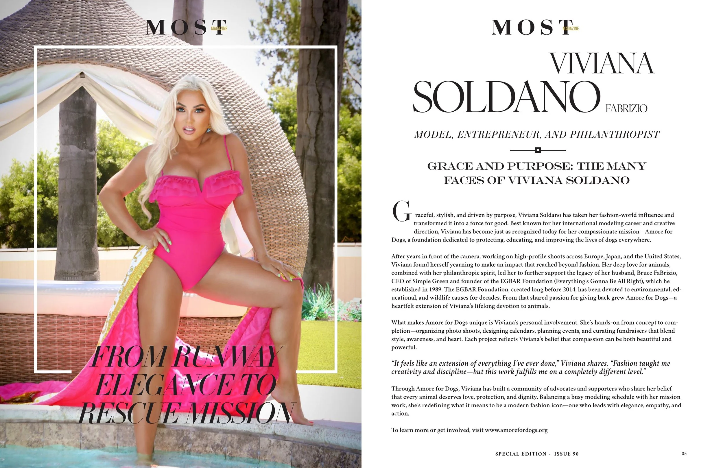 Graceful, stylish, and driven by purpose, Viviana Soldano has taken her fashion-world influence and transformed it into a force for good. Best known for her international modeling career and creative direction, Viviana has become just as recognized today for her compassionate mission—Amore for Dogs, a foundation dedicated to protecting, educating, and improving the lives of dogs everywhere.
